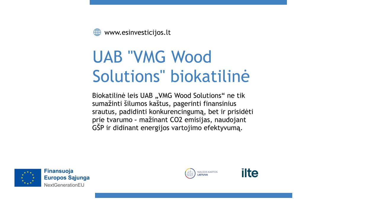 Bendrovei „VMG Wood Invest“ priklausanti „VMG Wood Solutions“ pasirašė 8 mln. eurų paskolos sutartį su nacionaliniu plėtros banku ILTE dėl biokatilinės įsigijimo.
